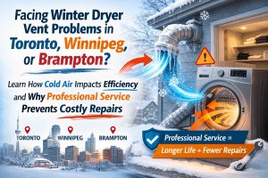 When temperatures drop across Canada winter dryer vent problems become a serious concern for homeowners. From heat loss to moisture blowback and damp clothing, these